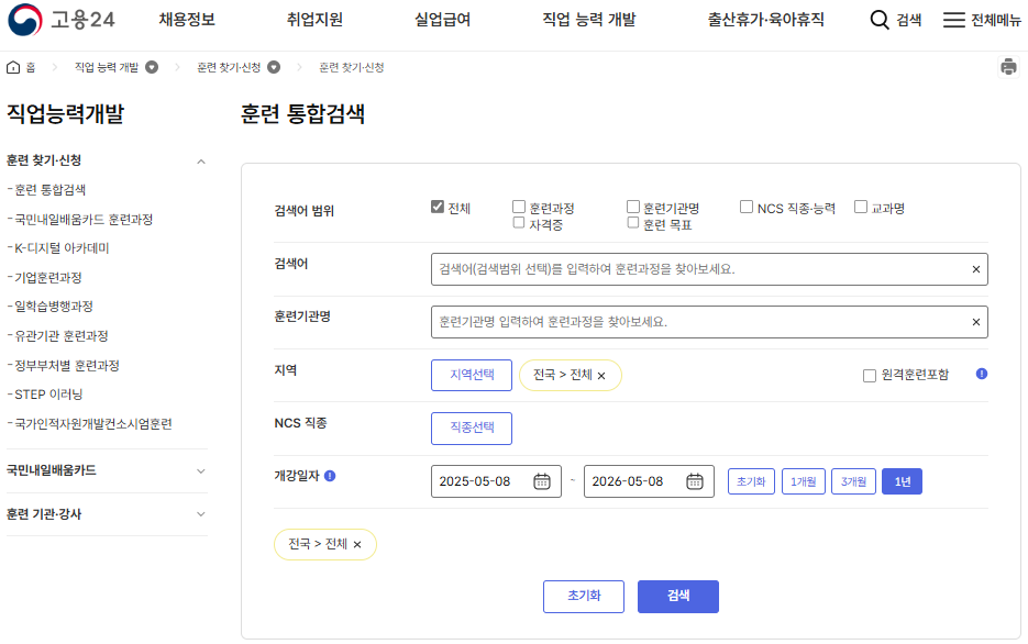 검색하는 법은 다들 아시죠? 내일 배움 카드 교육과정 지원 학원 검색은 고용 24 사이트에서 검색가능하니, 참고하세요.