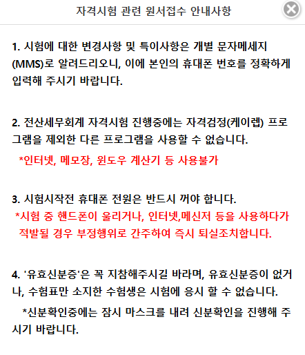 2. 전산세무회계 원서 접수 시 주의사항 (시험장 자동 배정)